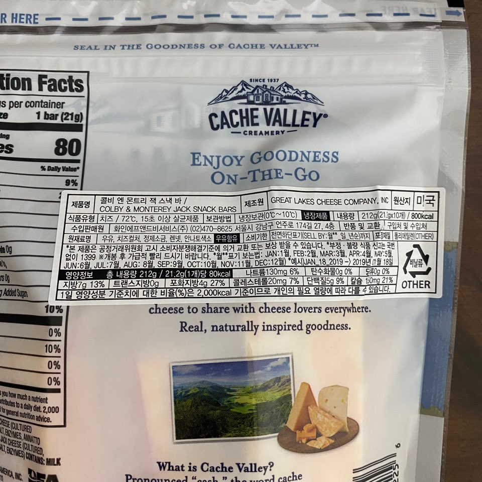캐시밸리 콜비잭 치즈 스낵바 212g